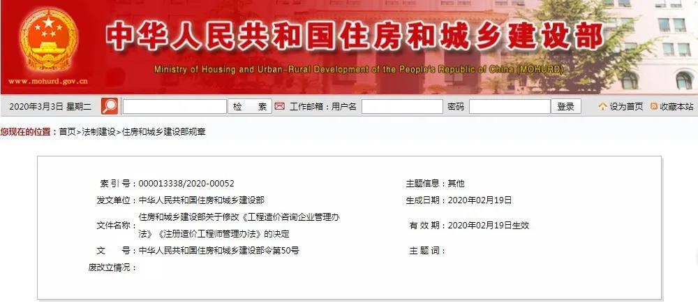 住建部对《工程造价咨询企业管理办法》进行了修改。