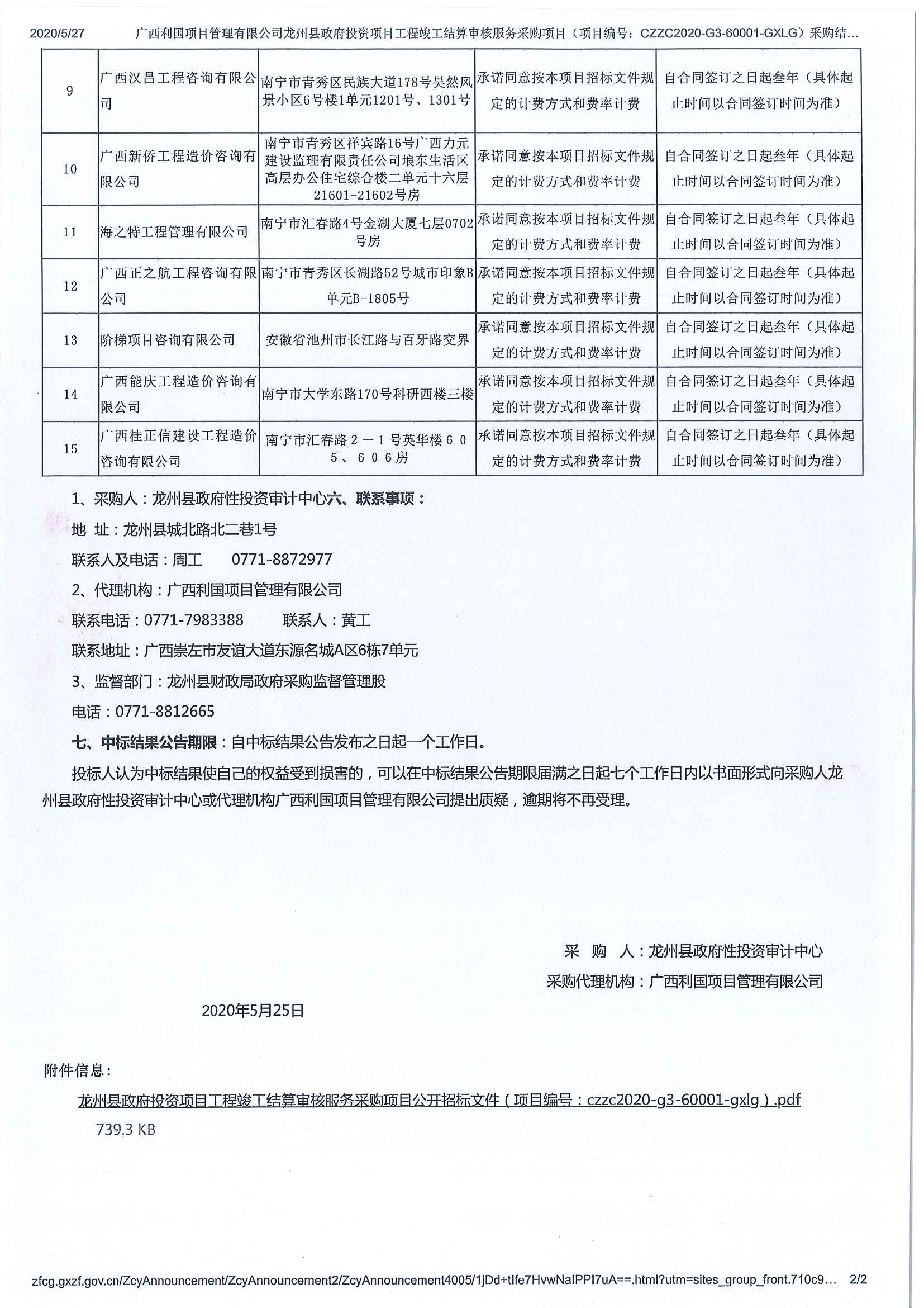 其中,汉昌咨询凭借自身实力顺利中标龙州县政府性投资审计中心以公开招标采购方式选择15家工程造价咨询机构参与龙州县政府投资项目工程竣工结算审核。这在一定程度上给予了汉昌咨询极大的肯定,也证明了汉昌咨询是有实力参与和有能力支持政府投资相关项目的。