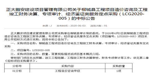 近日,江南在线注册(简称“汉昌咨询”)又成功中标正大鹏安项目建设管理有限公司受采购单位柳城县审计局的委托,于2020年6月2日就柳城县工程项目造价咨询及工程竣工财务决算、专项审计、经济鉴证类服务定点采购(项目编号:LCG2020-005)项目采用公开招标方式进行采购的政府性投资项目以及广西真诚工程咨询有限公司关于崇左市(东盟)农产品综合批发零售中心项目预算编制费(项目编号:CZZC2020-C3-20042-GXZC)项目。这些项目的中标在一定程度上证明了汉昌咨询是有资格和同行企业去竞争的,同时也说明了在工程咨询行业中汉昌咨询也是个实力派和潜力股。
