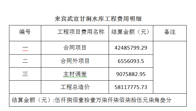 甘涧水库工程位于广西来宾市武宣县黄茆镇上额村甘检屯东南面的甘检河上,是一座以供水为主,兼顾灌溉等效益的综合利用的小(1)型水库,本工程等别为Ⅳ等,主要建筑物级别为4级,次要建筑物及临时建筑物级别为5级;按30年一遇洪水设计,300年一遇洪水校核,消能防冲建筑物按20年一遇洪水设计。水库蓄水位为188.00m,相应库容242万m3,死水位为162.00m,相应库容6万m3,水库总库容284万m3,有效库容236万m3。主要建设内容为:左岸非溢流坝段、放水塔及冲砂建筑物、溢流坝段、右岸非溢流坝段。