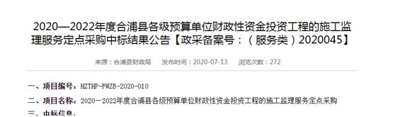 近日,江南在线注册(简称“汉昌咨询)凭借自身实力和努力成功中标2020—2022年度合浦县各级预算单位财政性资金投资工程的施工监理服务定点采购、广西机电设备招标有限公司关于聘请20家中介机构协助政府投资结算评审两大项目。