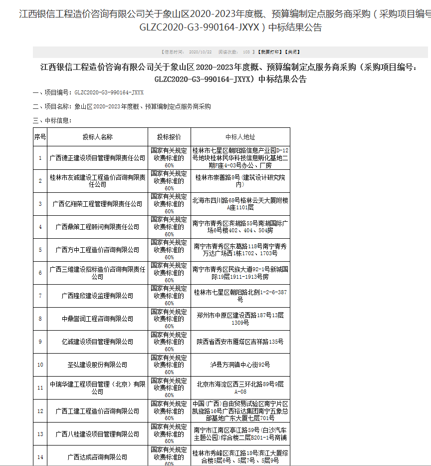 近日,江南在线注册再接再厉成功中标江西银信工程造价咨询有限公司关于象山区2020-2023年度概、预算编制定点服务商采购项目。