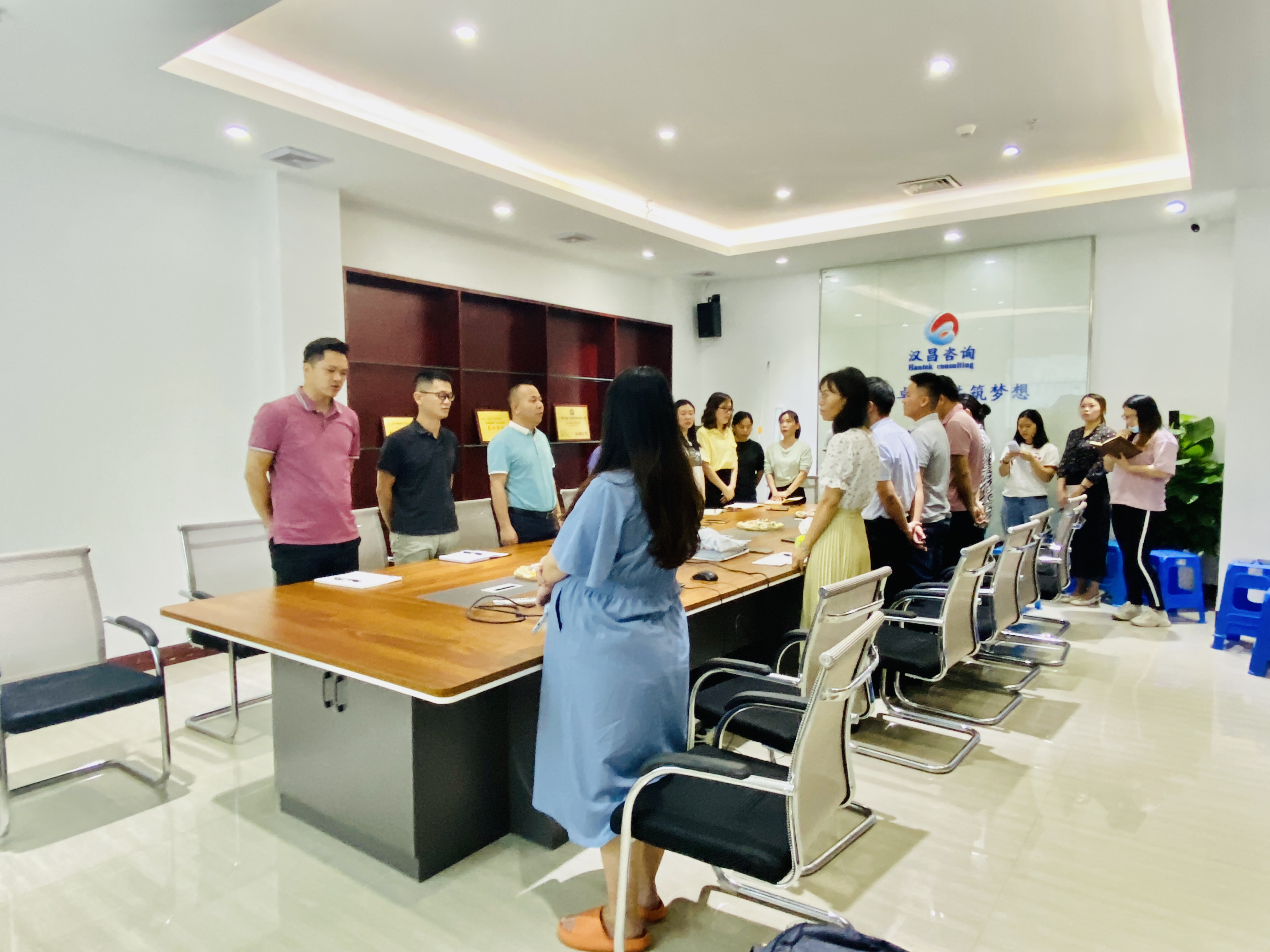 在会议开始前,由公司董事长伍昌海领唱我国国歌,鼓舞士气。董事长说:“没有党的正确领导,就没有改革开放的好日子,就没有企业的健康、可持续的发展,我们一定要跟着党走,全面贯彻落实国家及地方政府的方针政策、法律法规。大到公司,小到员工,都需要兢兢业业,严格遵守职业操守,为客户提供高质量的服务。”