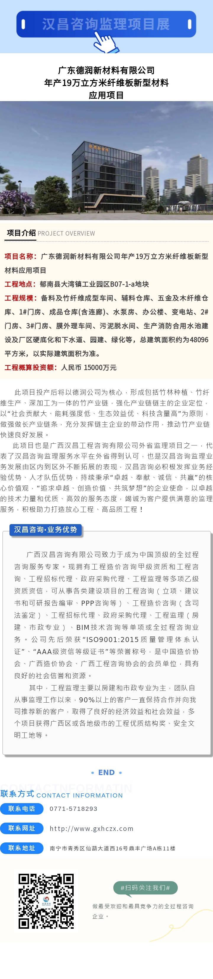 监理项目展|广东德润新材料有限公司年产19万立方米纤维板新型材料应用项目