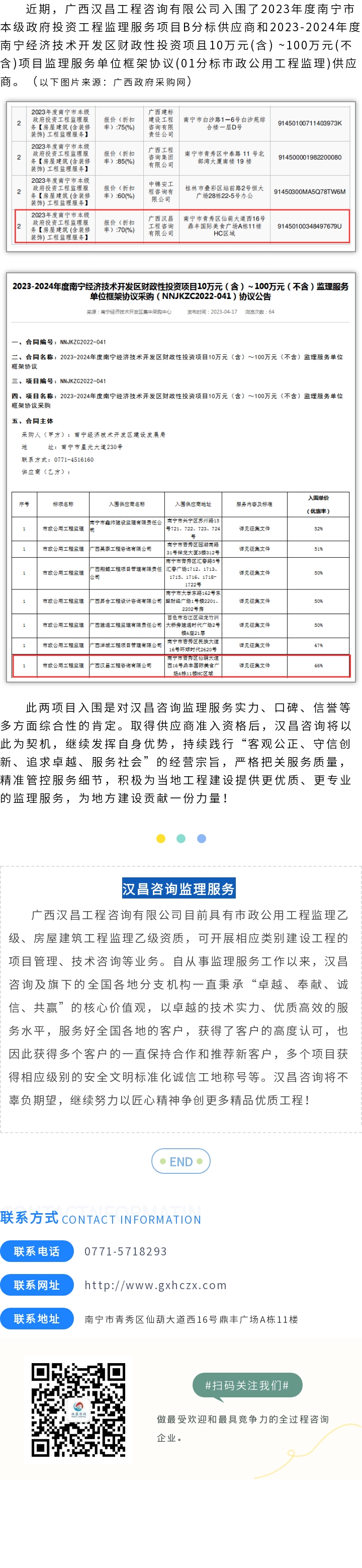 中标资讯|汉昌咨询成功入围两个监理服务项目供应商:南宁市本级政府投资工程、南宁经济技术开发区财政性投资项目