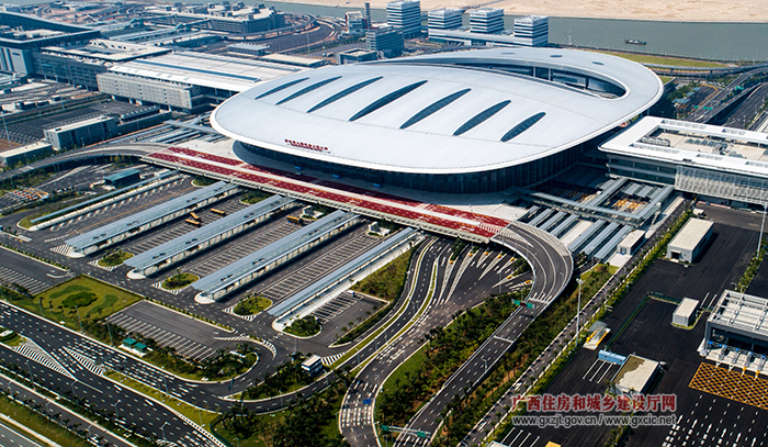 港珠澳大桥珠海口岸是港珠澳大桥的核心组成部分,是我国唯一三地互通、客货兼重的陆路口岸。2015年5月19日,总建筑面积为20.88万平方米的珠海口岸联检大楼II标段由广西建工集团第五建筑工程有限责任公司开工建设,在战胜了帕卡、天鸽等台风,克服了众多技术难点后,2018年3月30日顺利竣工交付,得到了业内同行的高度赞誉,为粤港澳大湾区核心交通枢纽贡献了“广西力量”。