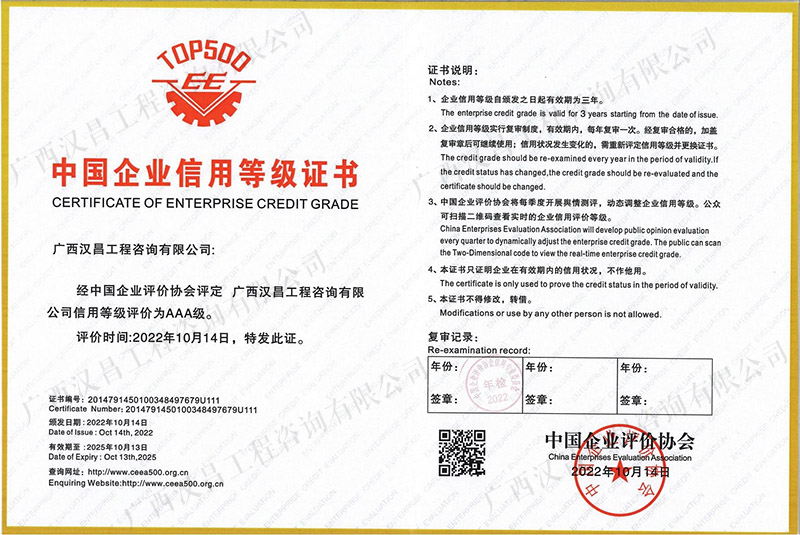 AAA信用单位证书
